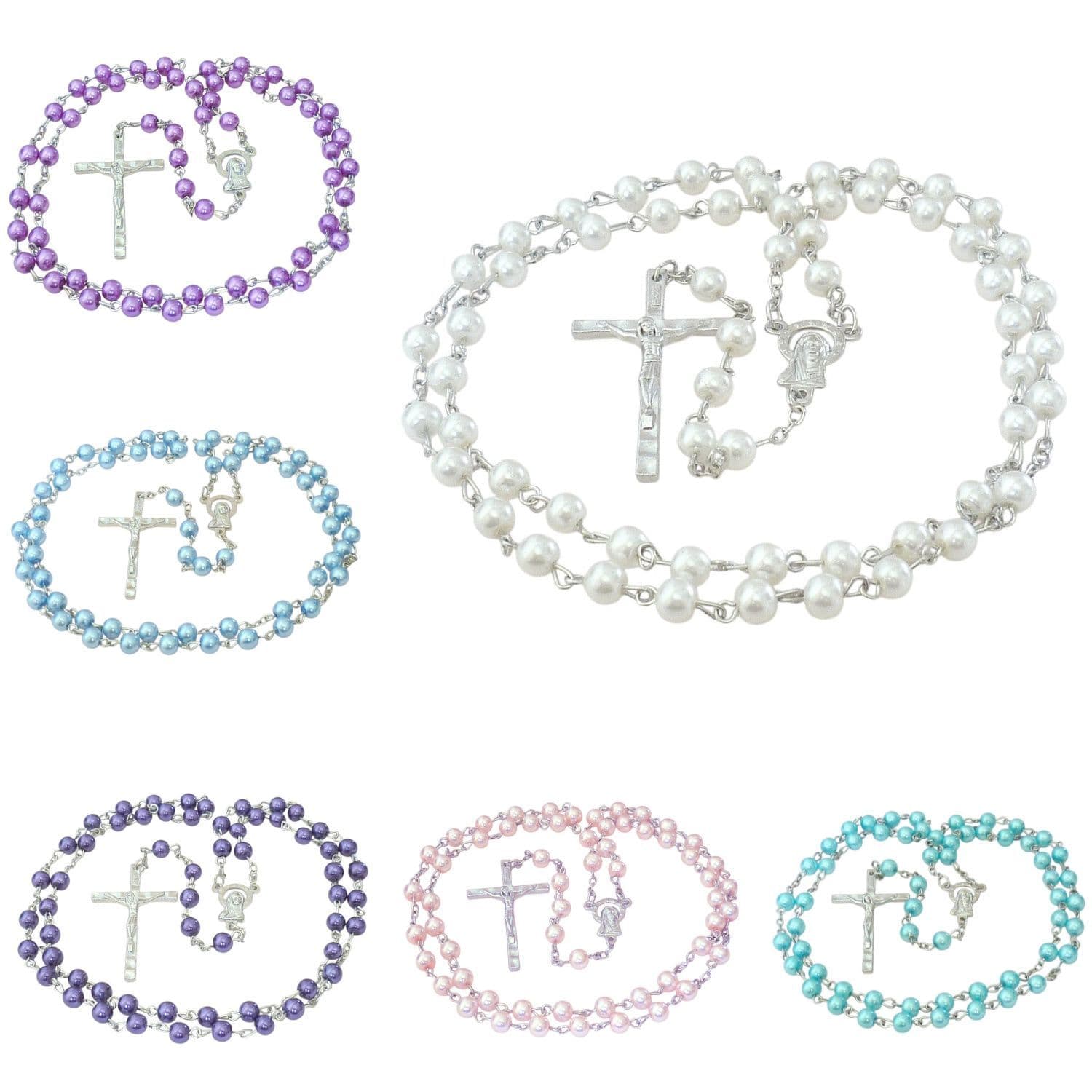 Rosaries are available in Pale Pink, White, Pale Blue, Turquoise, Mauve or Purple