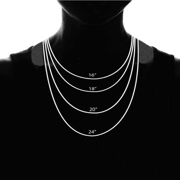 Chain Length: We stock these necklace chains in 14ins(child), 16ins, 18ins, 20ins, 22ins and 24ins.
